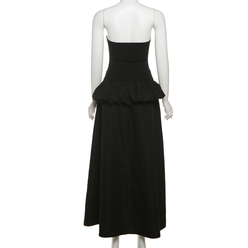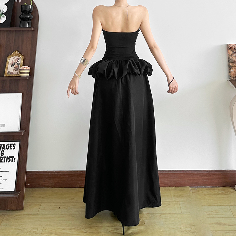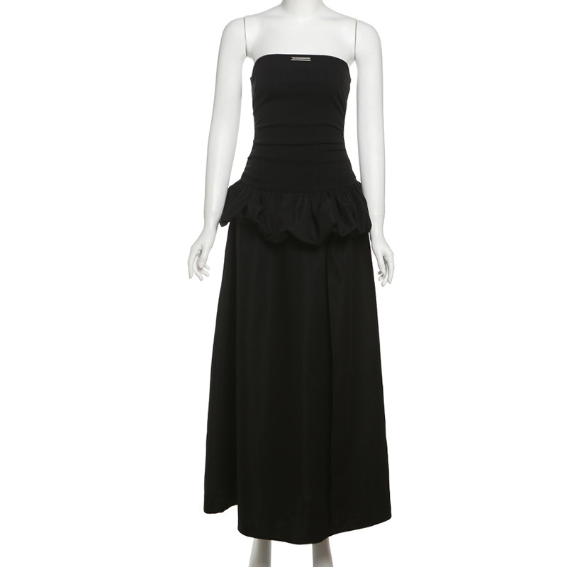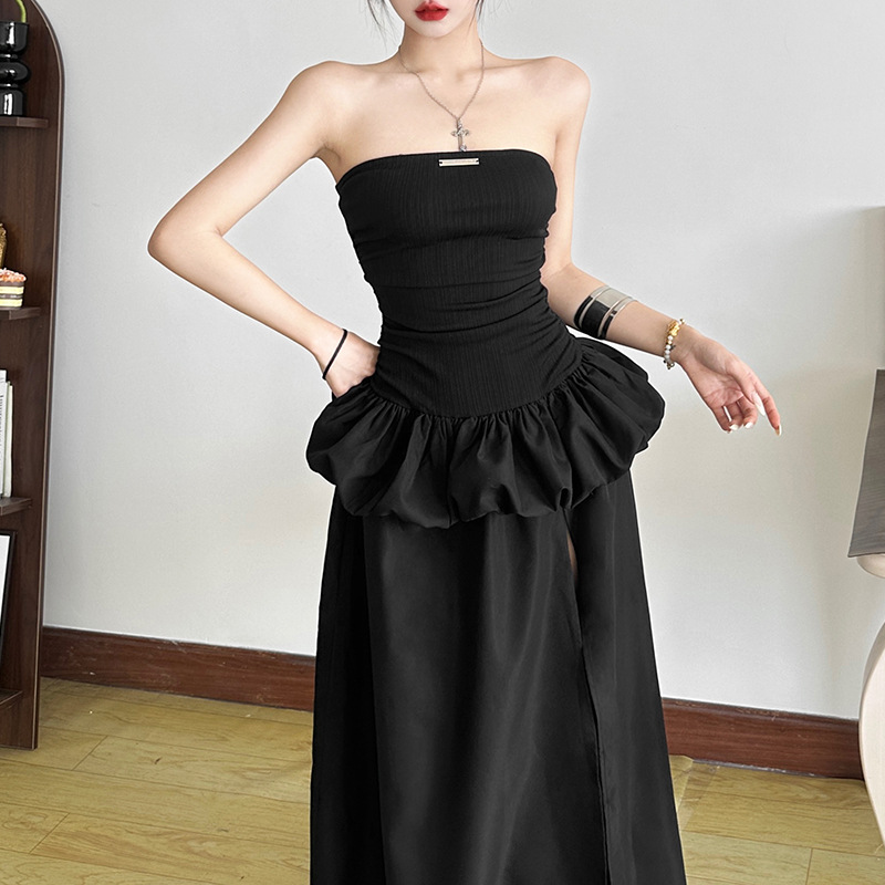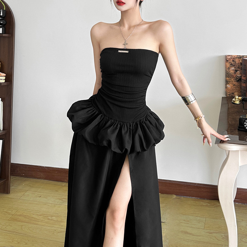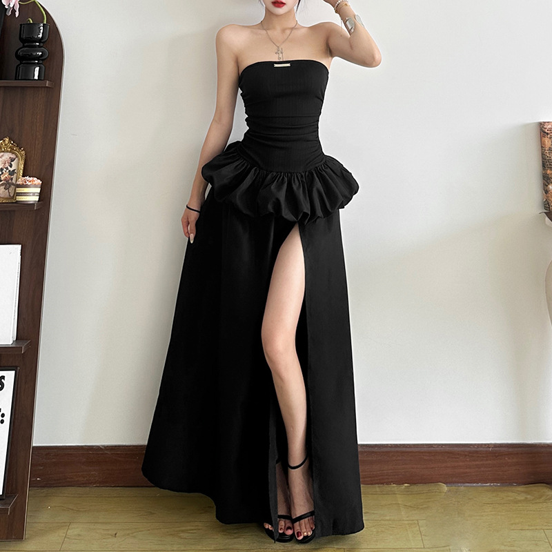 New Women's Solid Color Slim-fit High Waist Fashion Off-neck Split Dress
