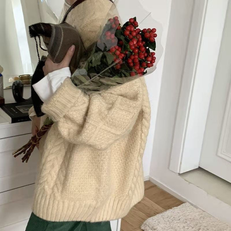 Women Wearing Loose Sweaters Outside The Street With Gentle Wind