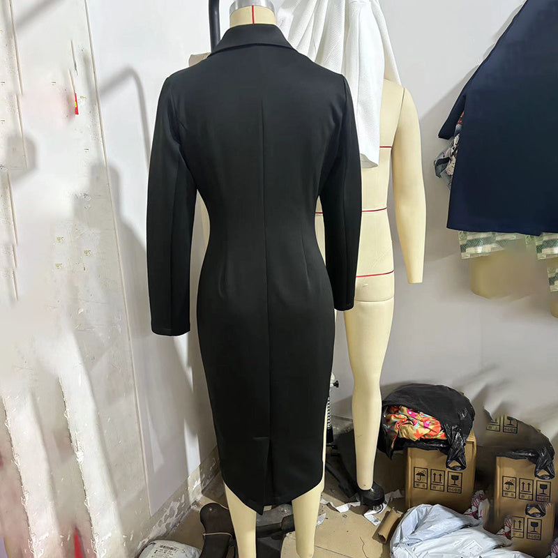 Step into the boardroom with confidence and timeless style in our Women's Solid Blazer Dress. This sophisticated piece is designed to be a powerhouse in your professional wardrobe, masterfully blending the sharp, authoritative structure of a blazer with the effortless elegance of a dress. It features a flattering V-neckline, long sleeves, and a full vertical button placket , creating a clean, polished silhouette. The sleek, body-skimming fit and modest midi length ensure you look impeccably dressed for any office setting or formal occasion.